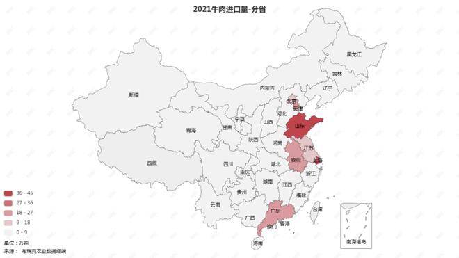 而国内消费高收入群体主要集中在环渤海、长三角及珠三角地区。因环渤海、长三角地区经济发达,人多地少,农业发展相对薄弱,所以本地基本没有肉牛生产基地,需要大量从外地调入或由港口进口。