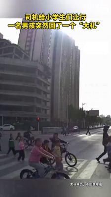 司机给小学生们让行,一名男孩突然回了一个“大礼”