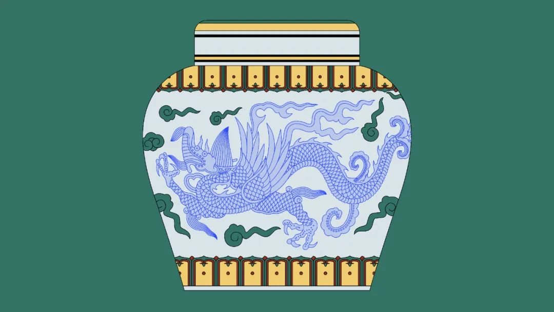(清)斗彩云龙纹盖罐上的翼龙纹(临摹设计图)