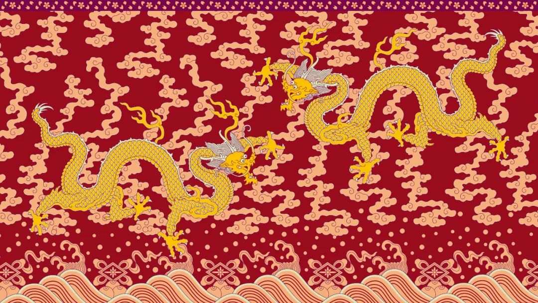 (清)紫地黄龙平纹墙毯上的龙纹(临摹设计图)
