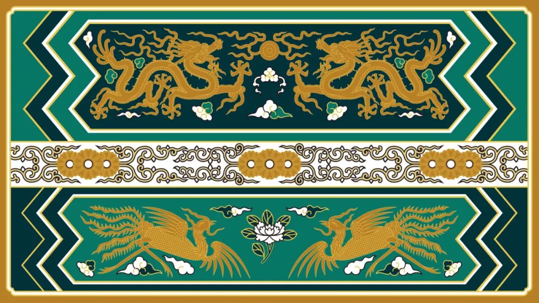 (清)寿康宫内檐和玺彩画上的龙凤花卉卷草纹(临摹设计图)