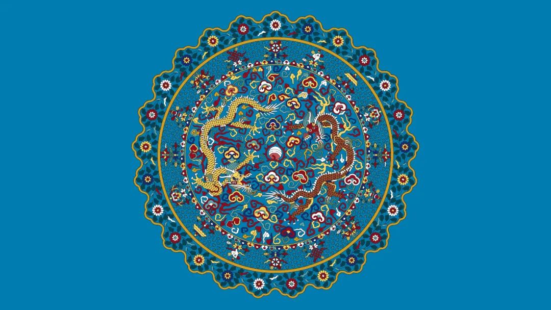 (明)景泰款掐丝珐琅双龙戏珠菊瓣口盘上的双龙戏珠纹(临摹设计图)