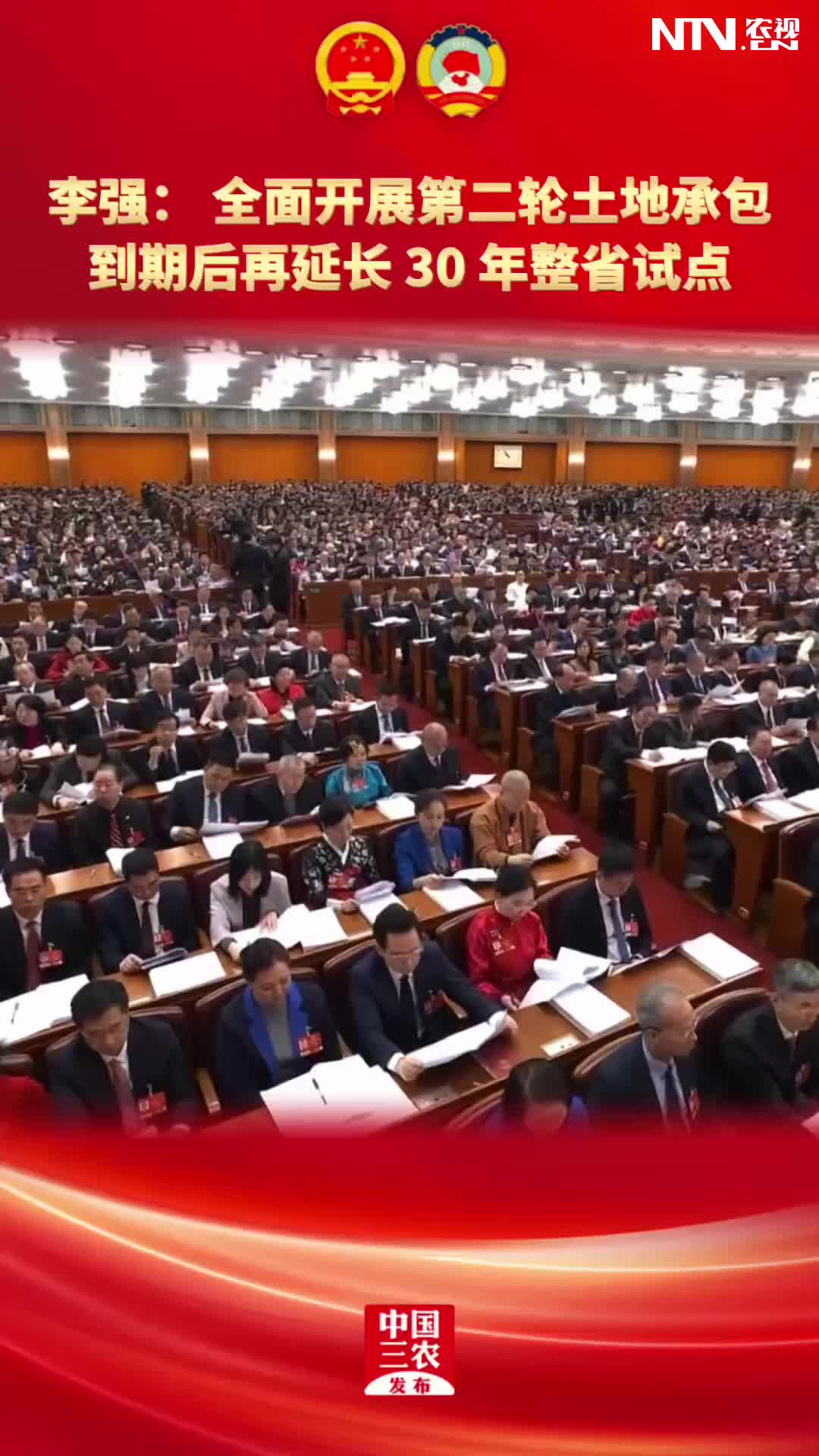 李强: 全面开展第二轮土地承包到期后再延长 30 …