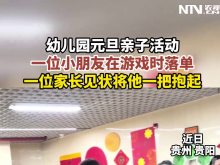 幼儿园元旦亲子活动,一位小朋友在游戏时落单,一位家…