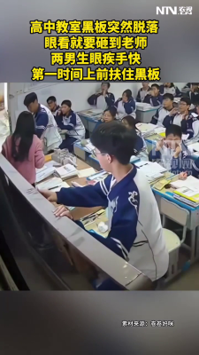 高中教室黑板突然脱落,眼看就要砸到老师。两男生眼疾…