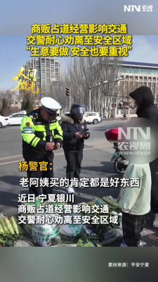 商贩占道经营影响交通,交警耐心劝离至安全区域,“生…