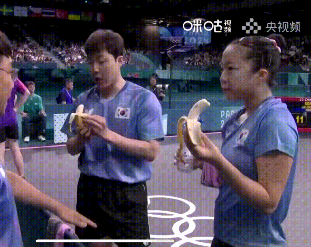 在巴黎奥运会乒乓球混双的比赛现场,韩国选手中场暂停的时候,总拿起一根香蕉在咀嚼,用心比赛又“进食”的样子,真的是十分可爱~