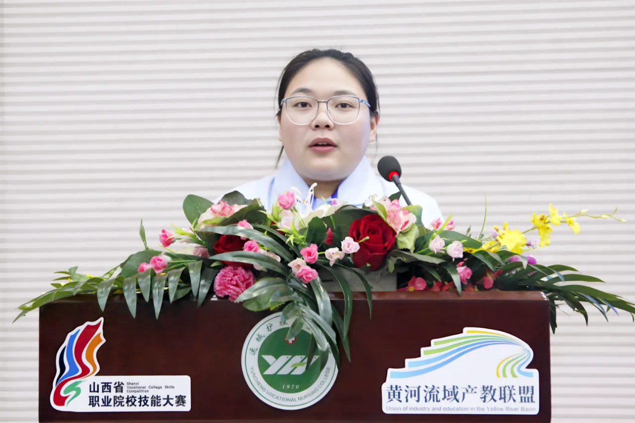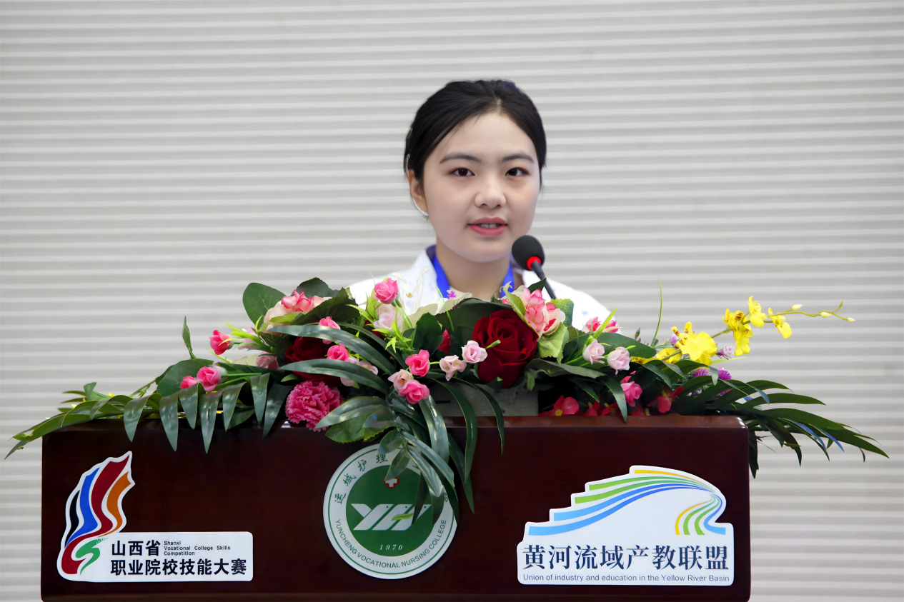 在热烈的掌声中,运城市副市长张锐宣布第十八届职业院校技能大赛“慧医杯”健康养老照护(高职组)赛项暨第三届黄河流域产教联盟“慧医杯”高职学生技能邀请赛口腔修复工艺赛项开赛。