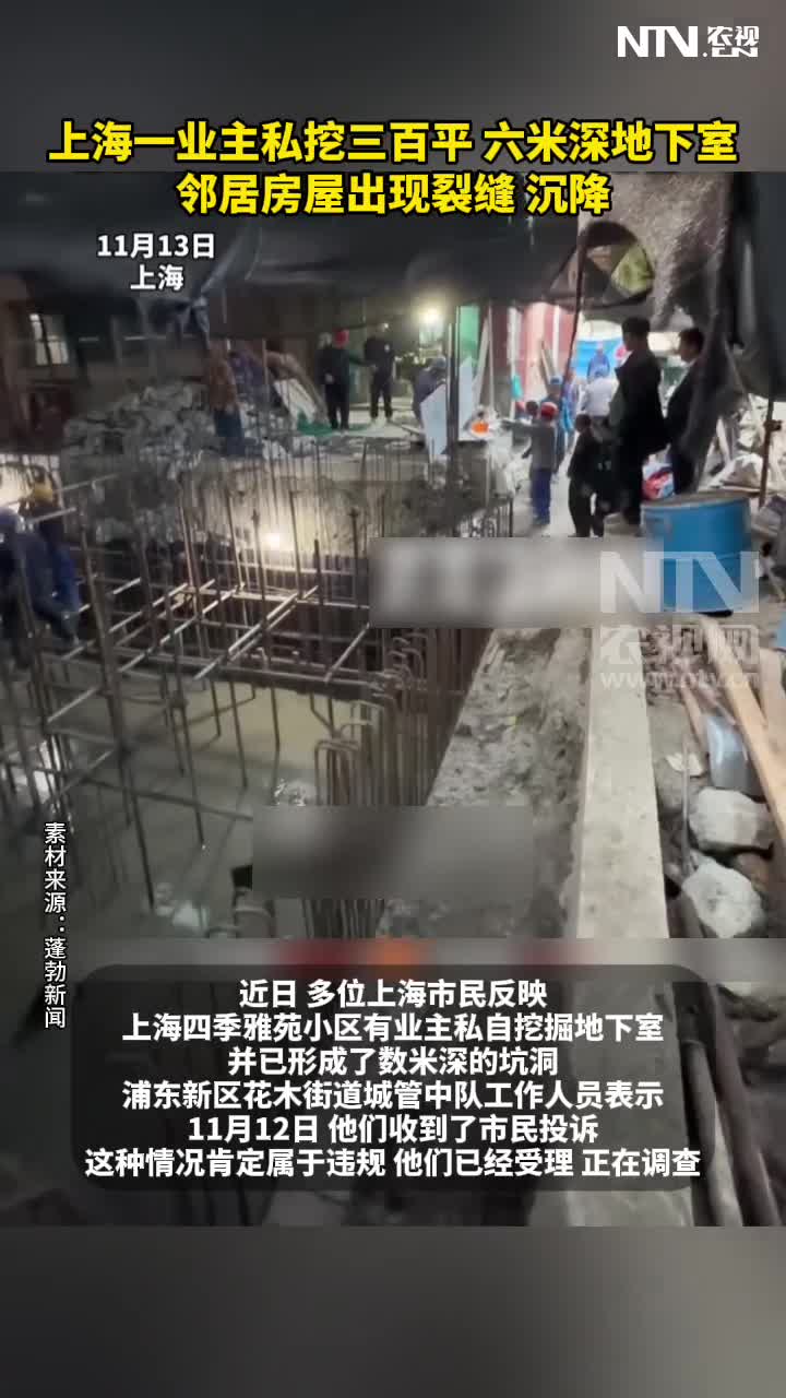 上海一业主私挖三百平、六米深地下室,邻居房屋出现裂…