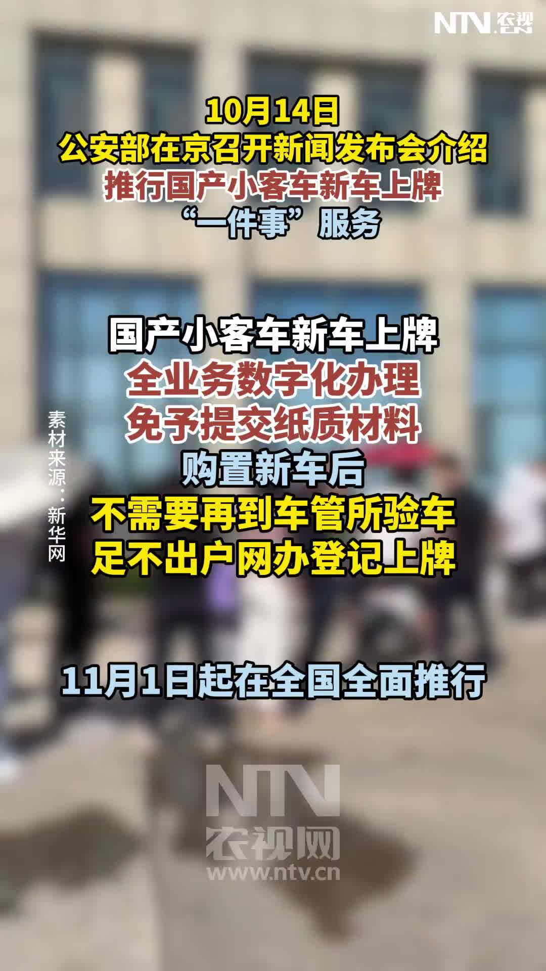 11月1日起在全国全面推行,国产小客车新车上牌不用…