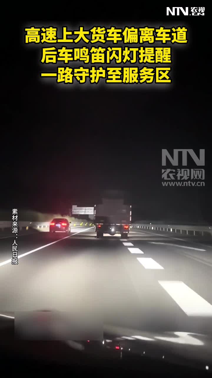 高速上大货车偏离车道,后车鸣笛闪灯提醒,一路守护至…