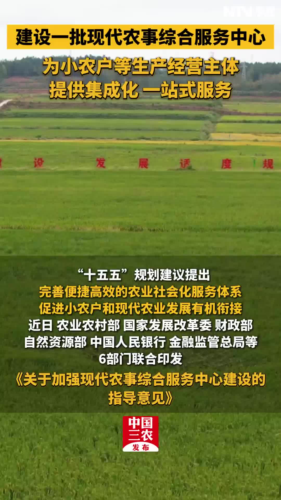 建设一批现代农事综合服务中心,为小农户等生产经营主体提供集成化、一站式服务