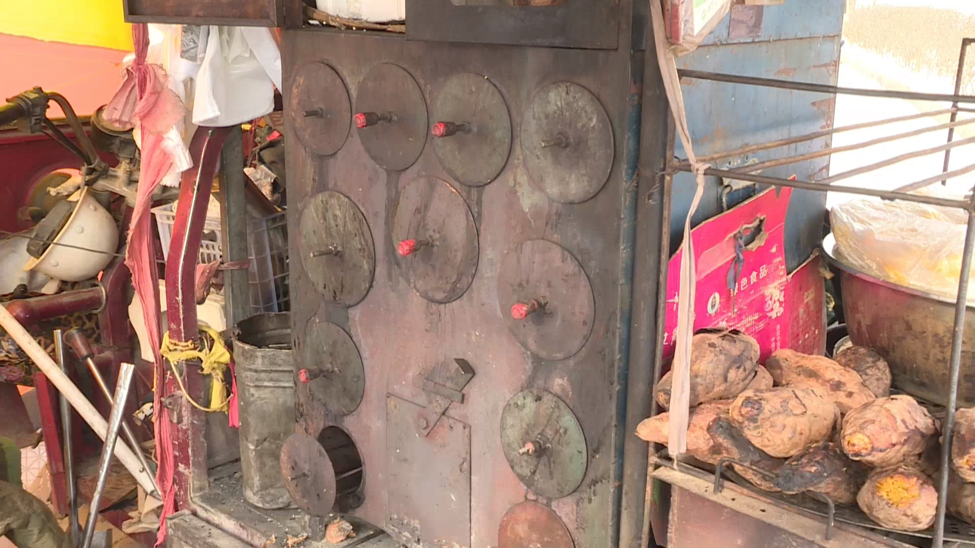 红薯摊摊主 黄银:这边人流量比较大一些就在这边卖,主要是医院陪护的人还有接送学生的人。红薯一天大概卖60-70个,玉米卖30-40个。加工过程全是自己加工,我卖了20多年了全靠自己加工,烤的卫生一些,为大家服务的好一些。