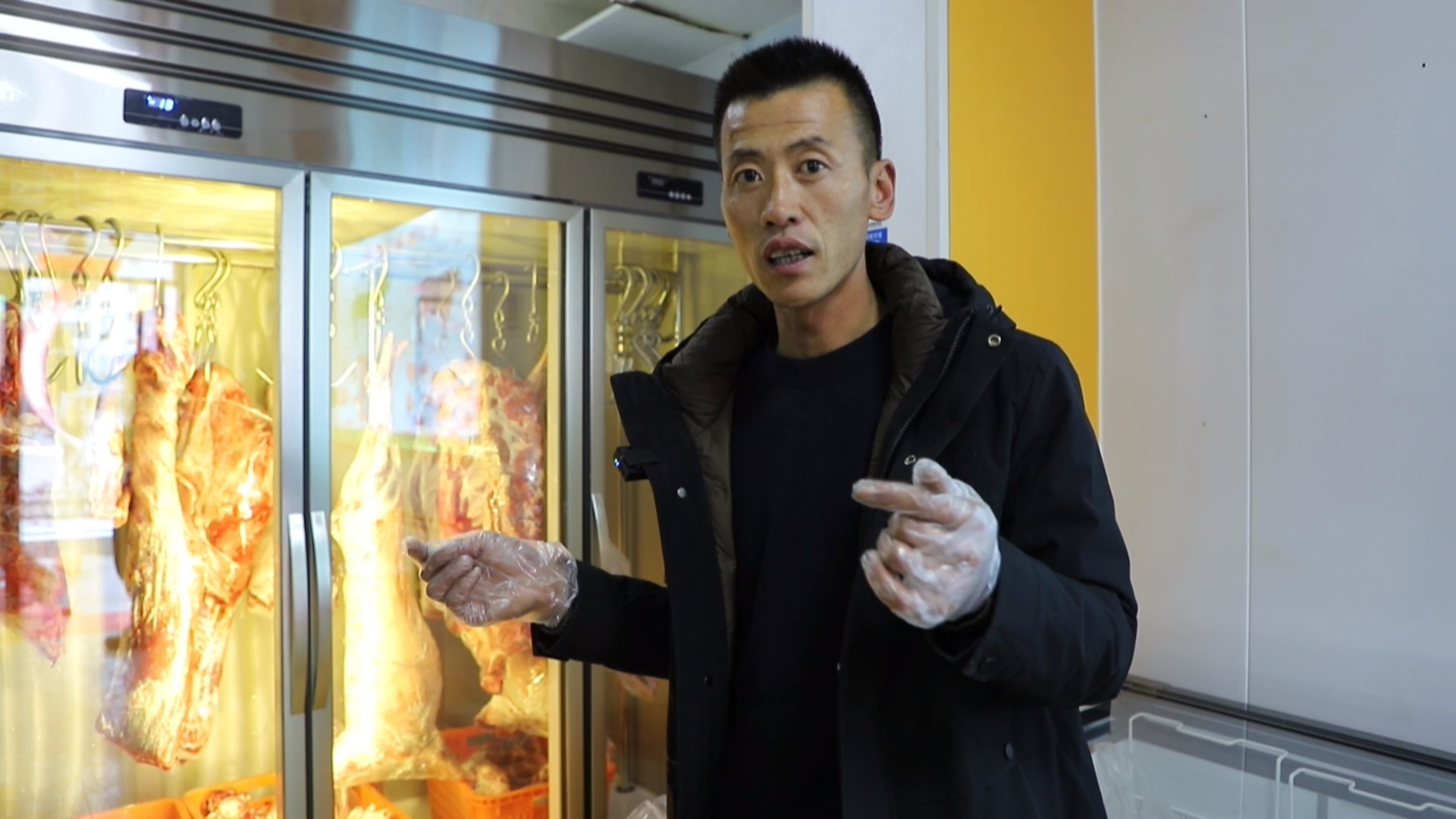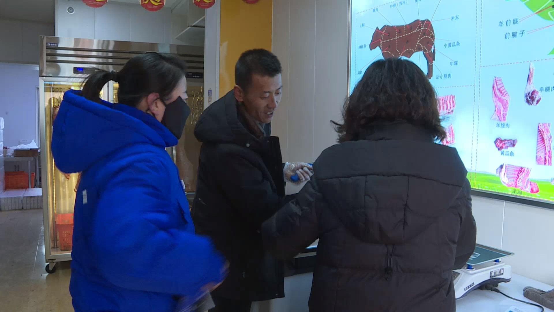 牛羊肉店铺店主 刘永祥:我们现在主要推出的是牛肉卷、牛肉片还有牛肉的精分割,客户可以根据需求买。天气冷了吃火锅的人比较多,所以我们推出了牛肉片、羊肉片。会宁的羊是绿色、纯天然的,通过这种方式带给市民方便,吃多少买多少每天都是新鲜的。