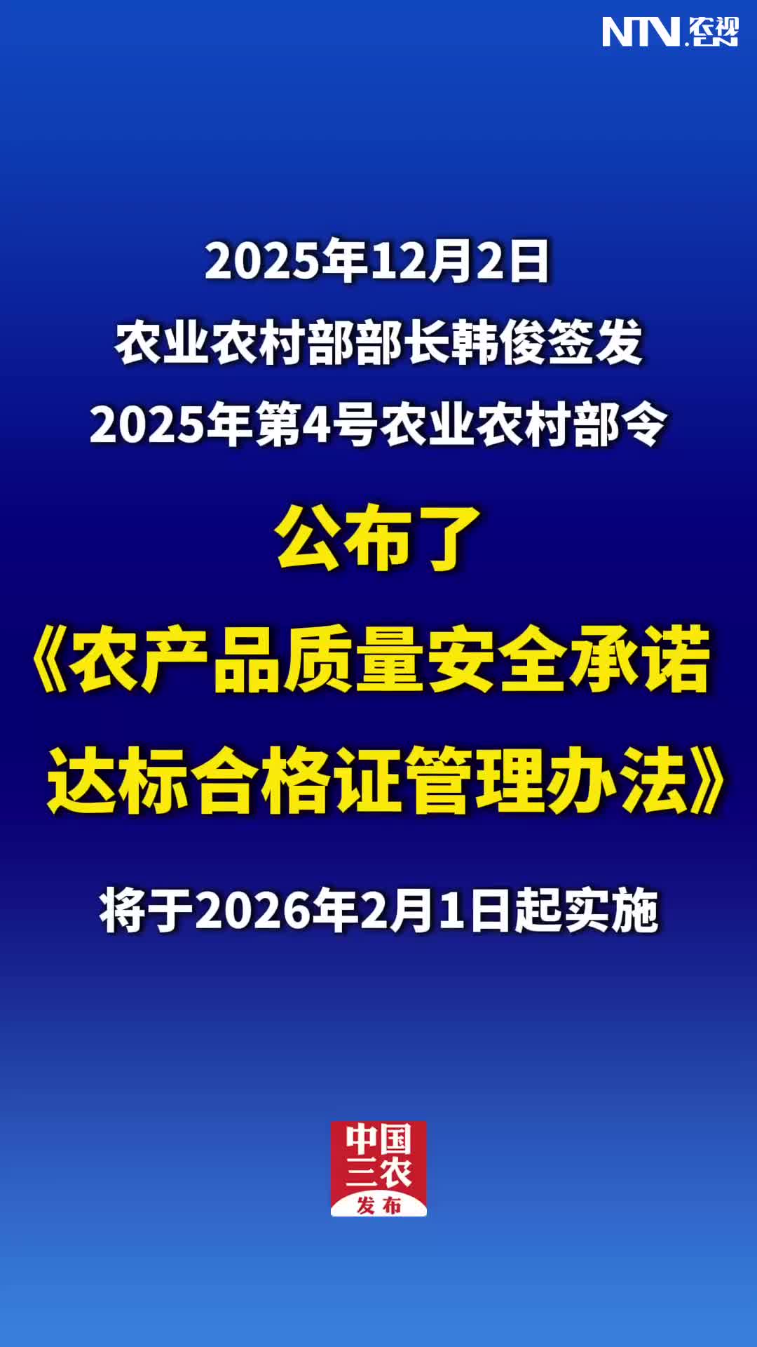 我国将对蔬菜、水果等实施承诺达标合格证管理