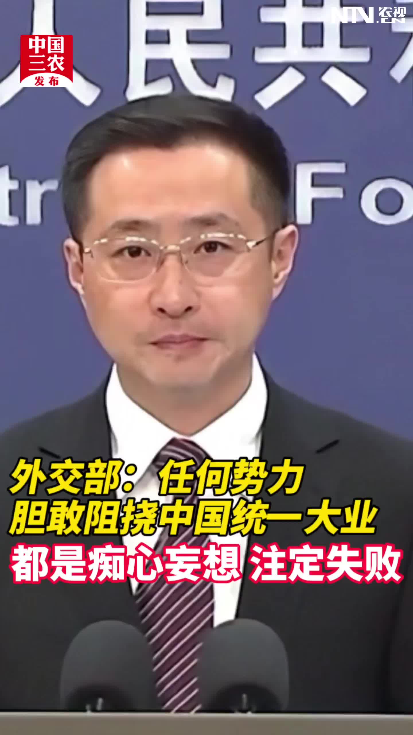 外交部:任何势力胆敢阻挠中国统一大业,都是痴心妄想…
