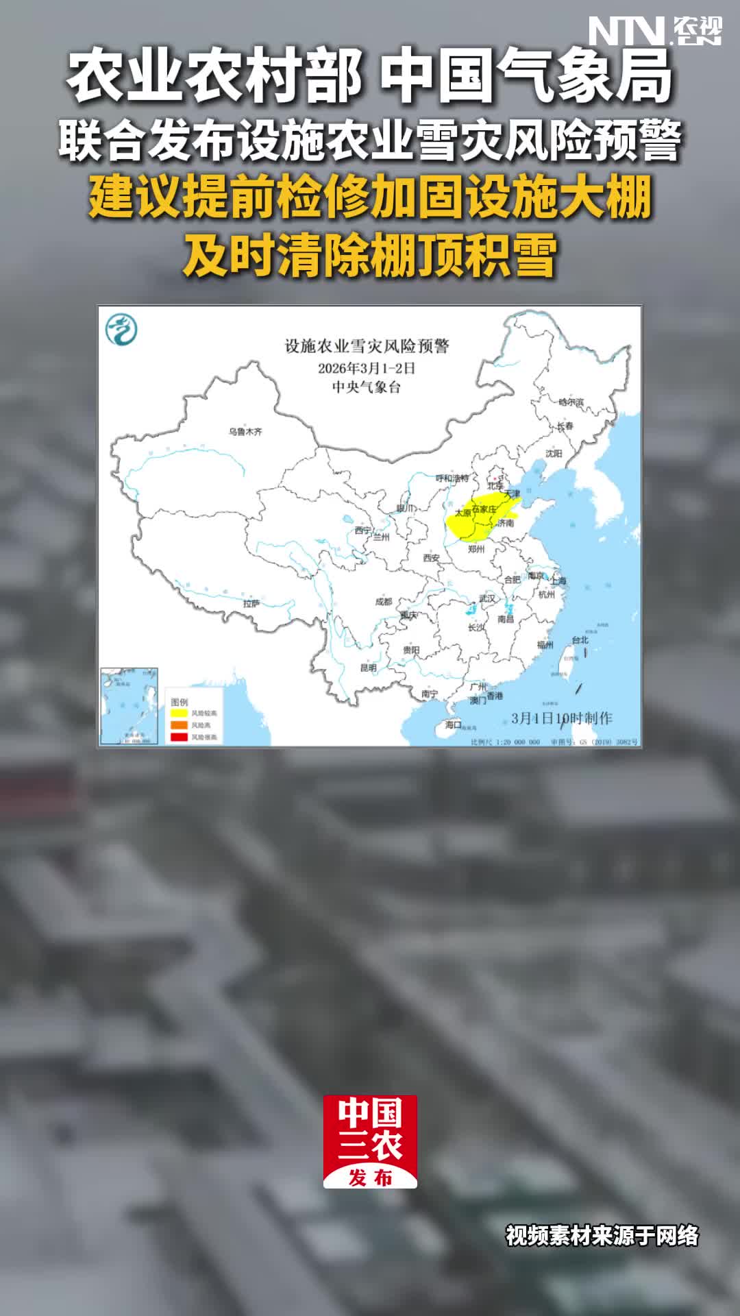 农业农村部 中国气象局联合发布设施农业雪灾风险预警…