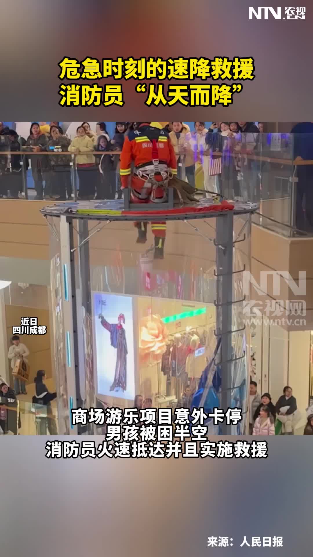 危急时刻的速降救援,消防员“从天而降”。#救援