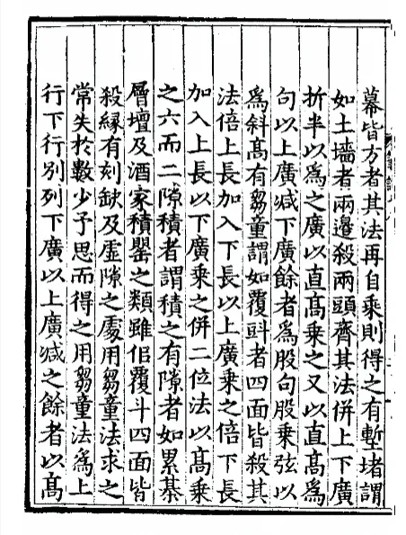 沈括在《梦溪笔谈》中写道:“余思而得之,用‘刍童法’为上行、下行,别列下广,以上广减之,余者以高乘之,六而一,并入上行。” 这句话用现代语言讲就是: