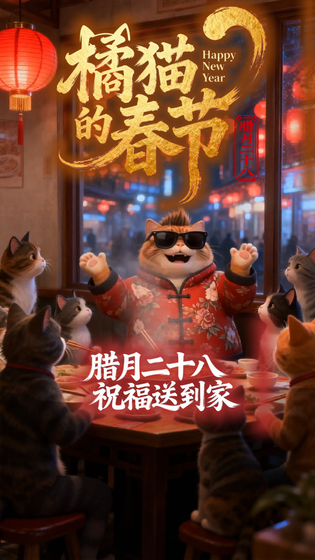 橘猫的春节丨腊月二十八,祝福送到家!少小离家老大回…