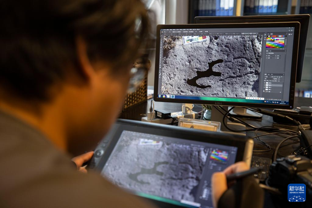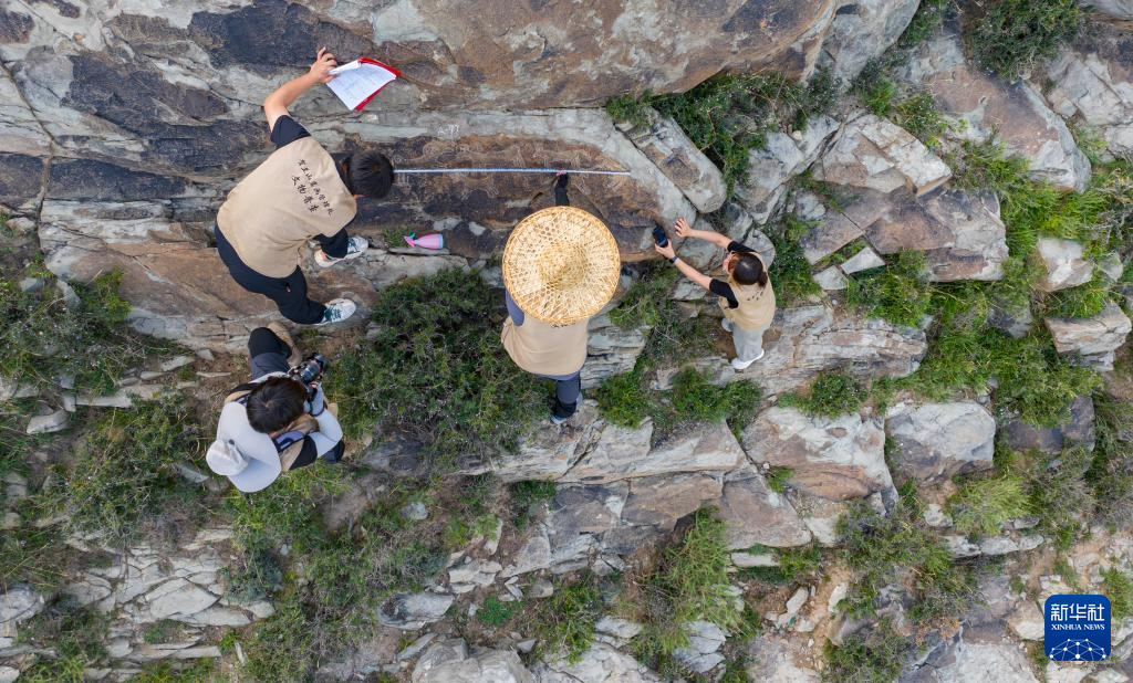 7月23日,工作人员在绘制岩画电子线描图。在岩画普查工作中,岩画电子线描图是实景岩画图像数字化的一种辅助方式,使画面清晰明确地呈现在岩画信息资料库中,便于日后查阅与研究工作。