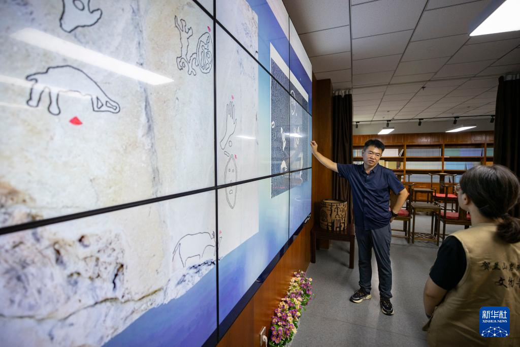 7月23日,工作人员在银川世界岩画馆研究室研究贺兰山岩画数字拓片。