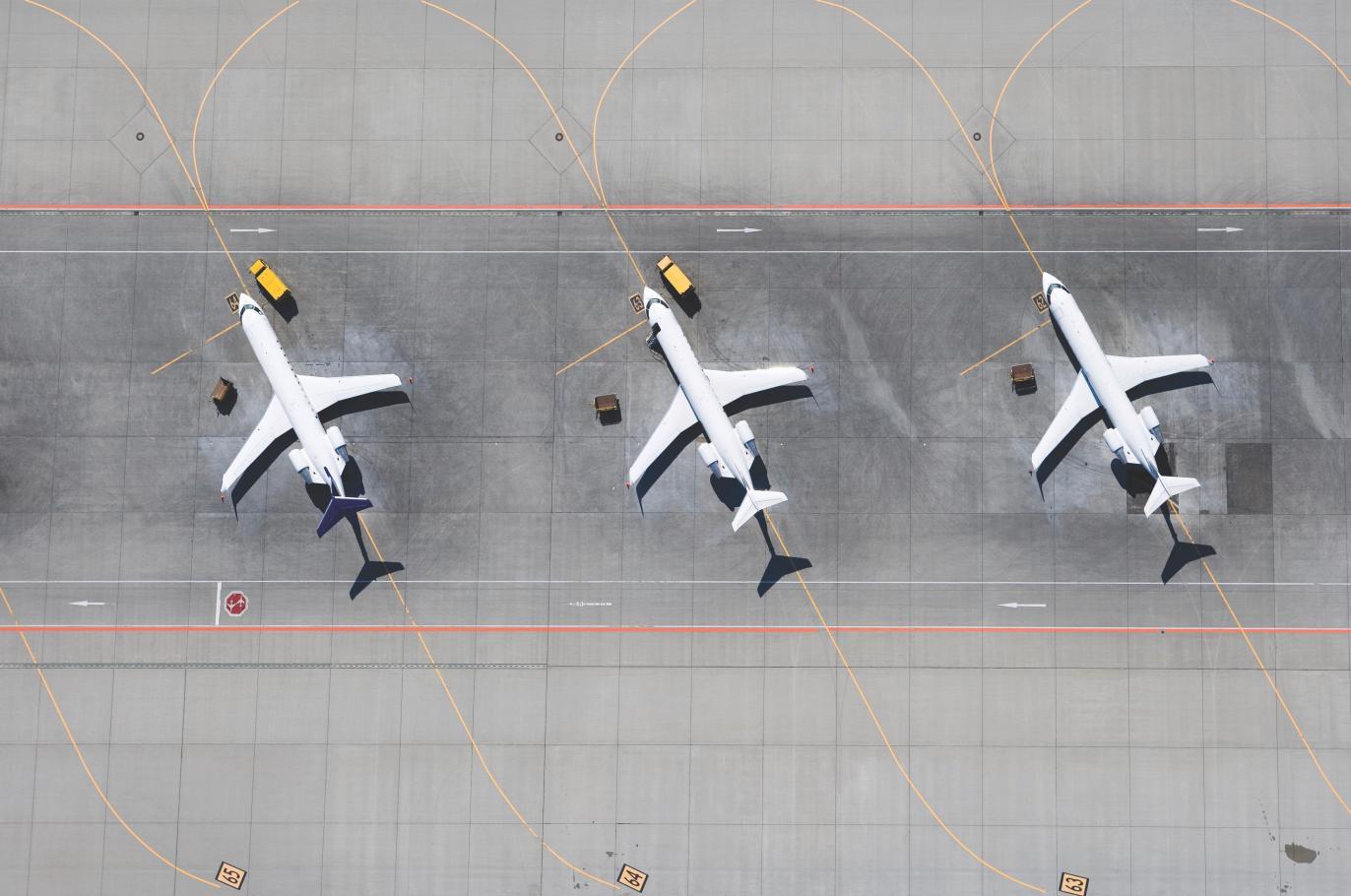 跑道的鸟瞰图显示,在乘客登机并准备起飞前,飞机会于停机坪内排队等候。