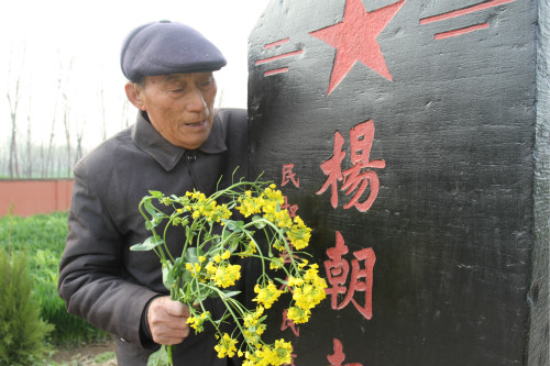 “俺父亲叫赵松武,他生前为了践行25年前的一句‘一定把烈士墓守好’的诺言,一年365天,每天都要把他的战友杨朝起烈士的墓碑擦拭一遍,日夜与抗日英雄陵墓为伴。”