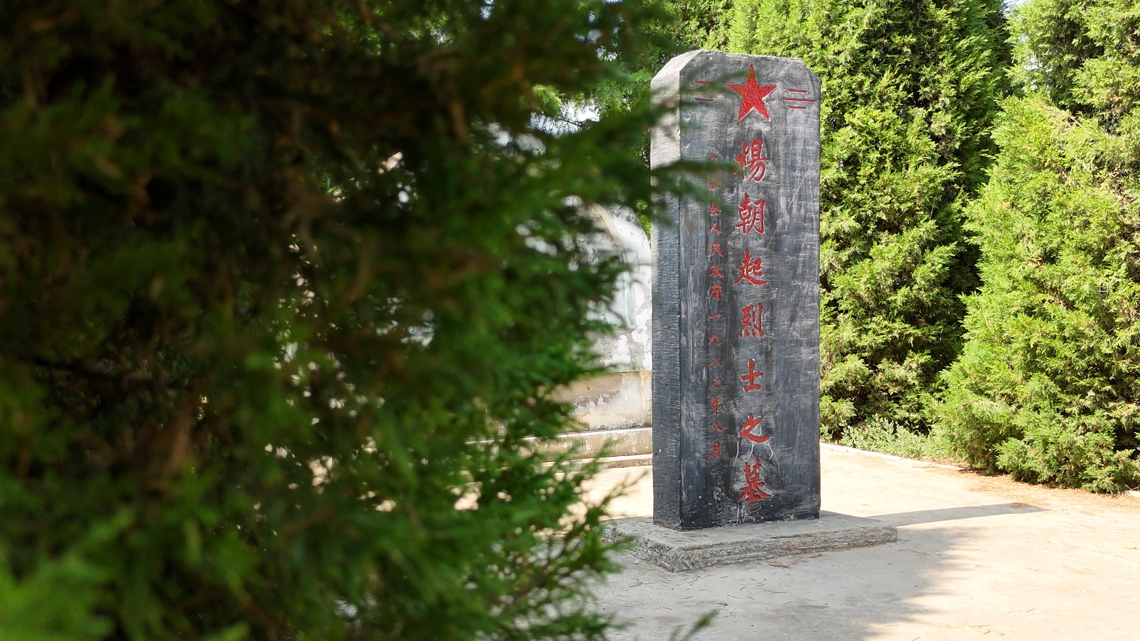 位于李馆地道前方,郁郁葱葱的松柏下,一座庄严肃穆的烈士墓常年静卧此地。长眠于此的,正是当年领导这片区域中共武装力量的游击队队长——杨朝起烈士。