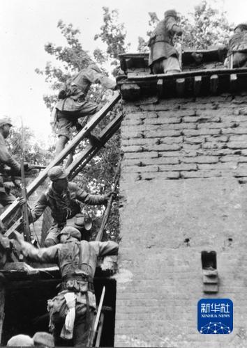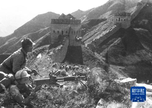 1945年,收复山海关的八路军列队通过城楼。张进学 摄