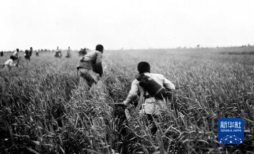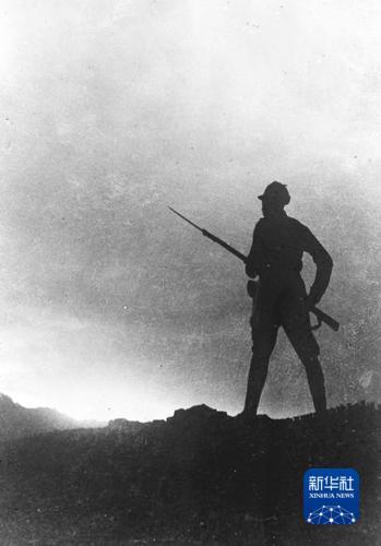 八路军战士背着缴获的日军武器及物资胜利归来。俞创硕 摄