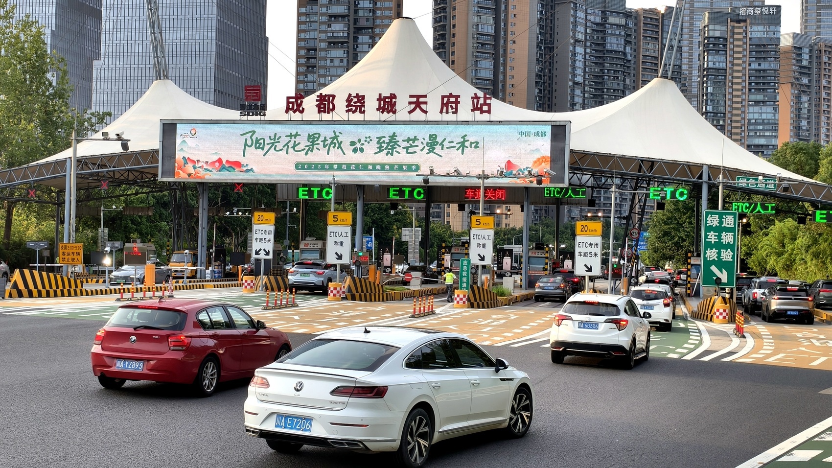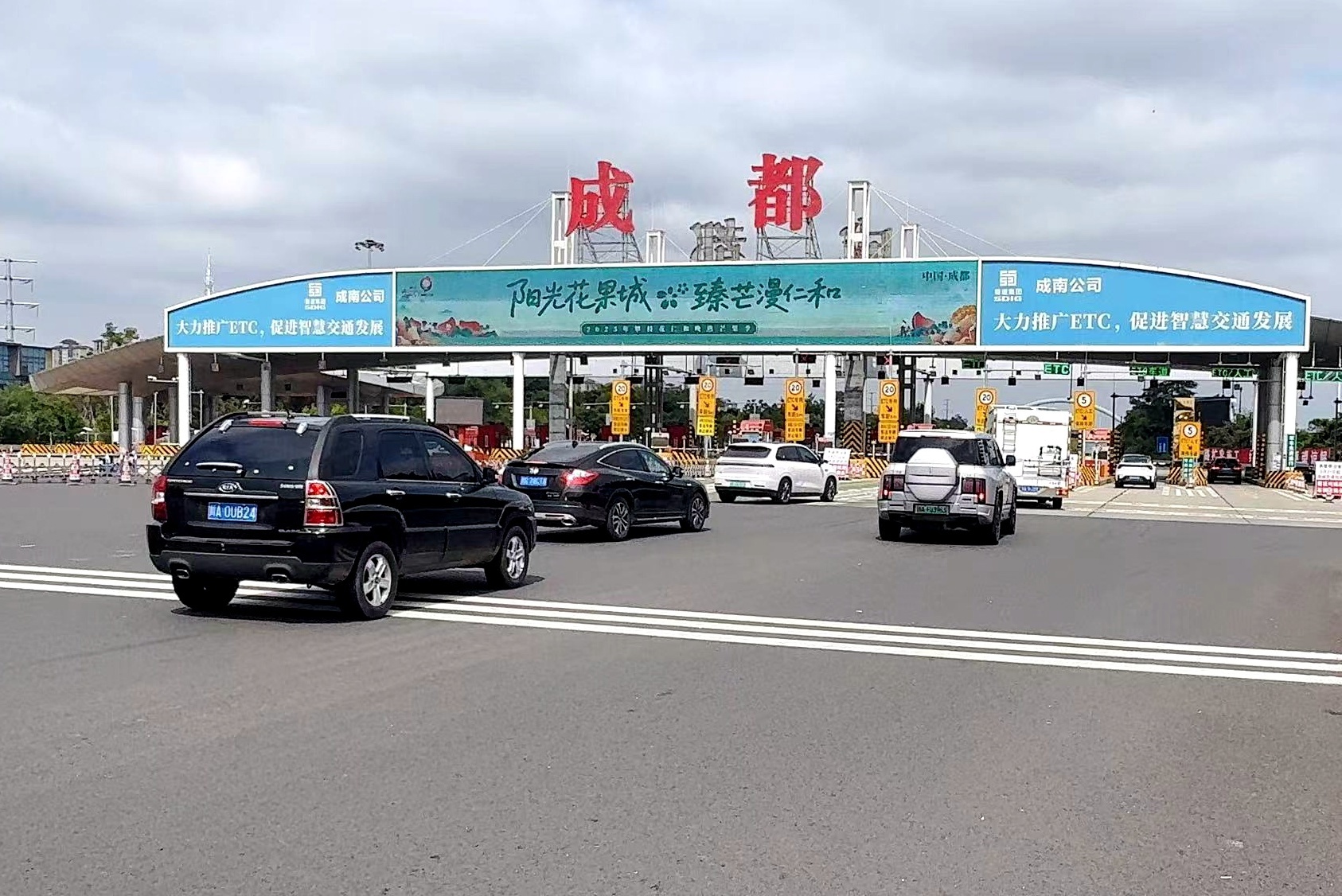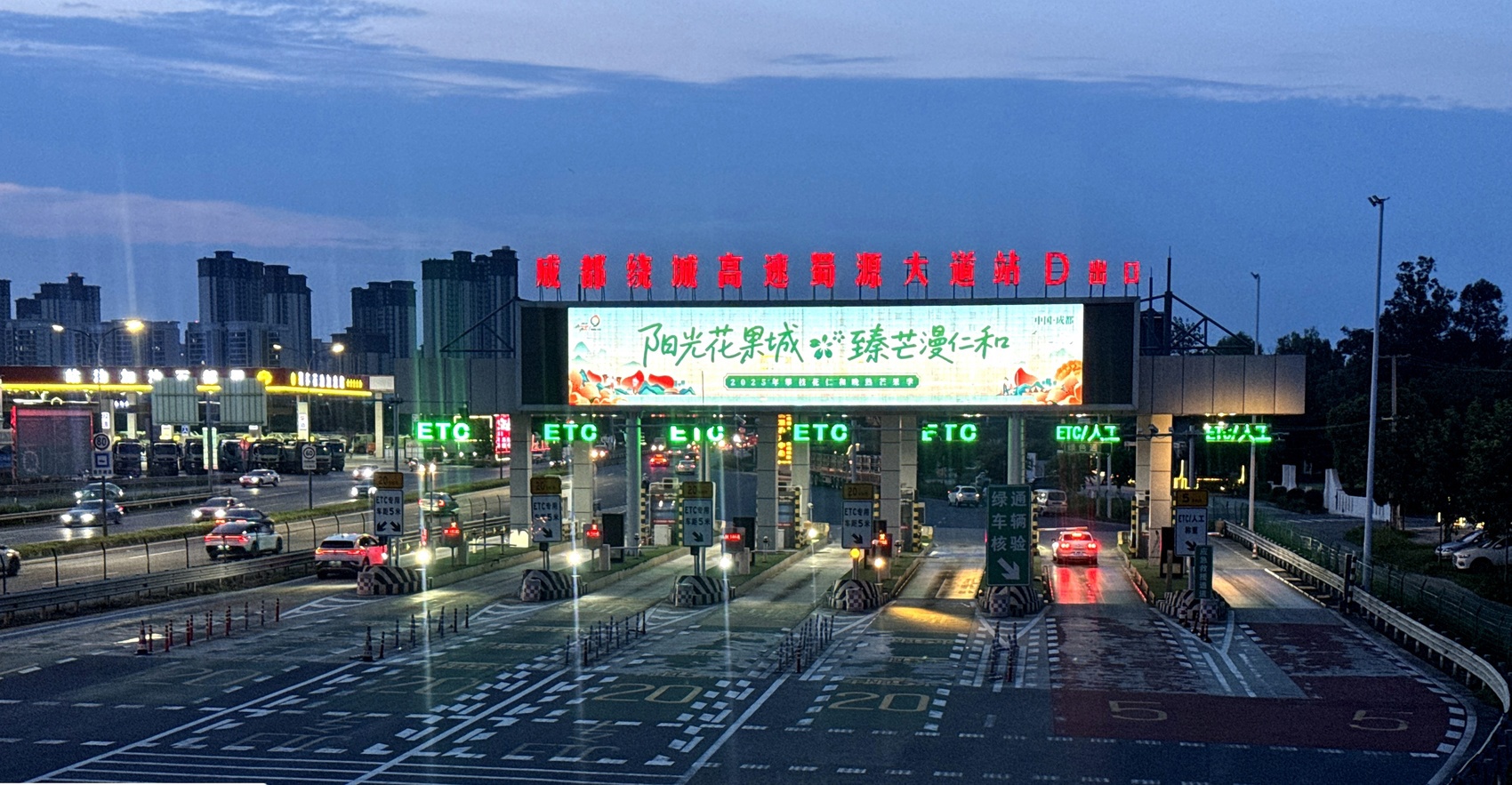商场外,在成都绕城高速天府站、锦城湖站、蜀源大道站、光华大道站等全城多个流量入口,色彩明艳的“阳光花果城·臻芒漫仁和”主题画面正在入口LED大屏轮播,对外展示推介“攀果臻品,仁和好芒”,吸引了过往市民、游客的目光。