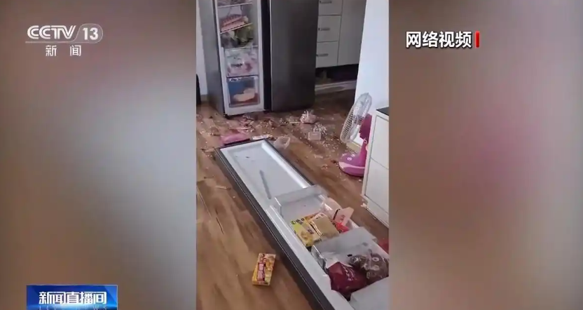 贵州的一个网友把买鲜货的剩余干冰放入矿泉水瓶后存储进冰箱,想着之后还能用,结果干冰在冰箱里突然爆炸,单侧冰箱门整个炸开,冰箱内的物品也因爆炸四散一地。