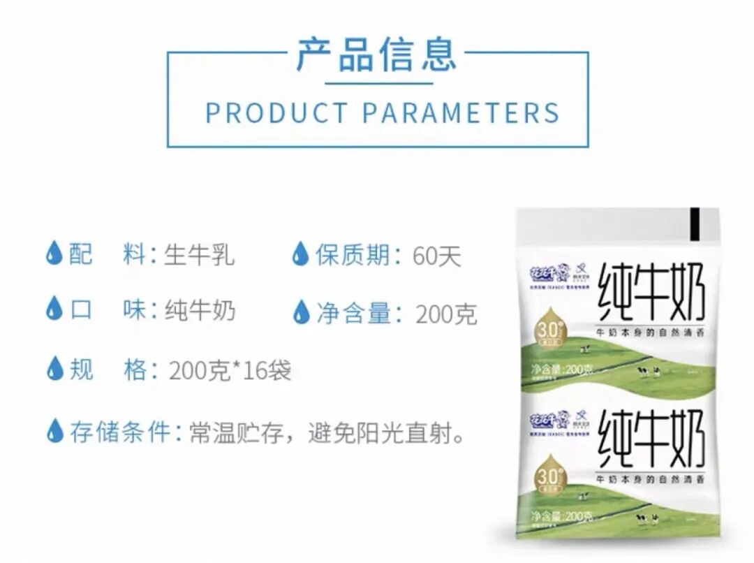 (花花牛乳业官网纯牛奶产品配料表截图)