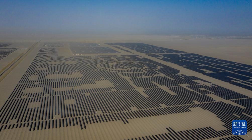 昔日的戈壁荒漠,如今由太阳能光伏板汇聚成“蓝色海洋”,由风力发电机组成“白色森林”,正孕育着无限“风光”。