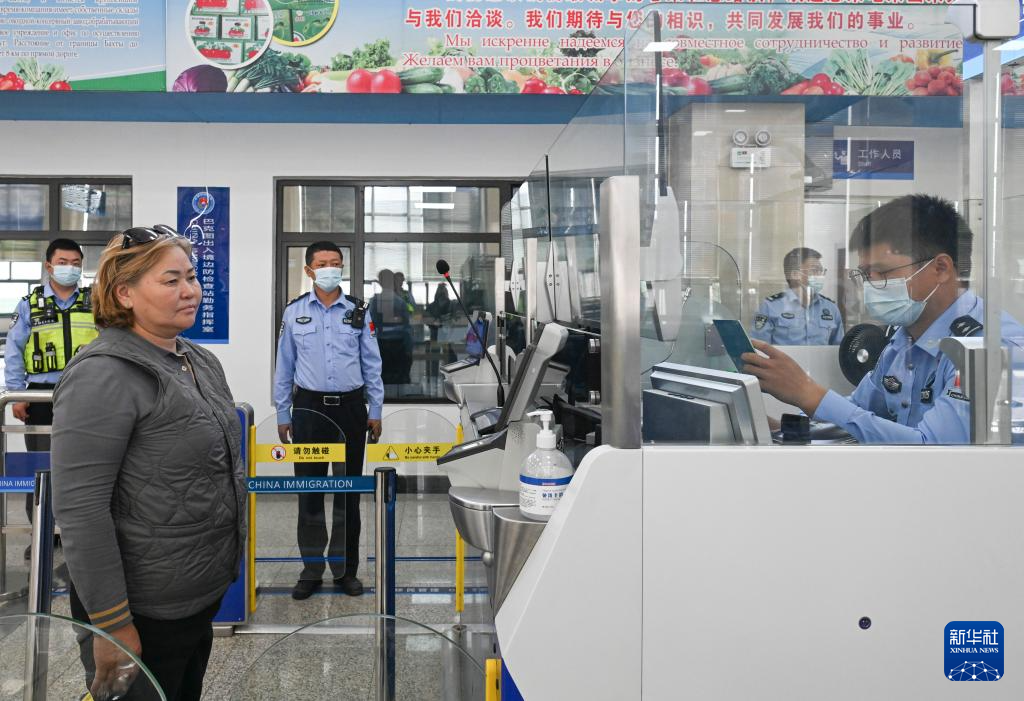 9月17日,巴克图出入境边防检查站的移民管理警察在为来自哈萨克斯坦的旅客办理入境手续。