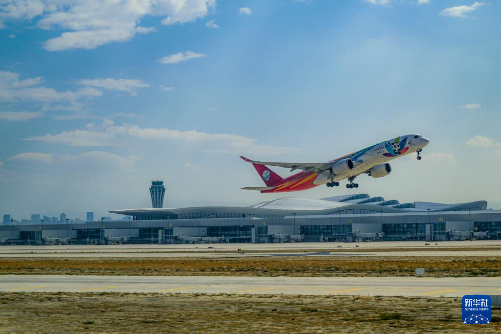 9月15日,一架飞机从乌鲁木齐天山国际机场起飞。