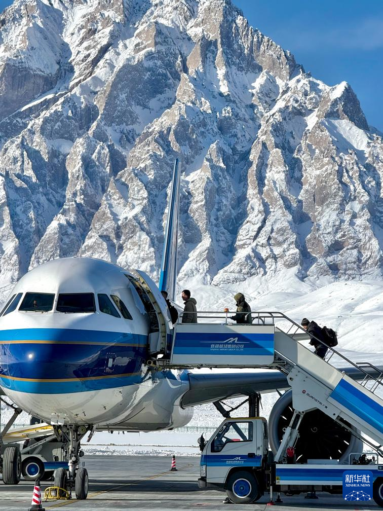 1月13日,旅客在塔什库尔干红其拉甫机场准备登机。