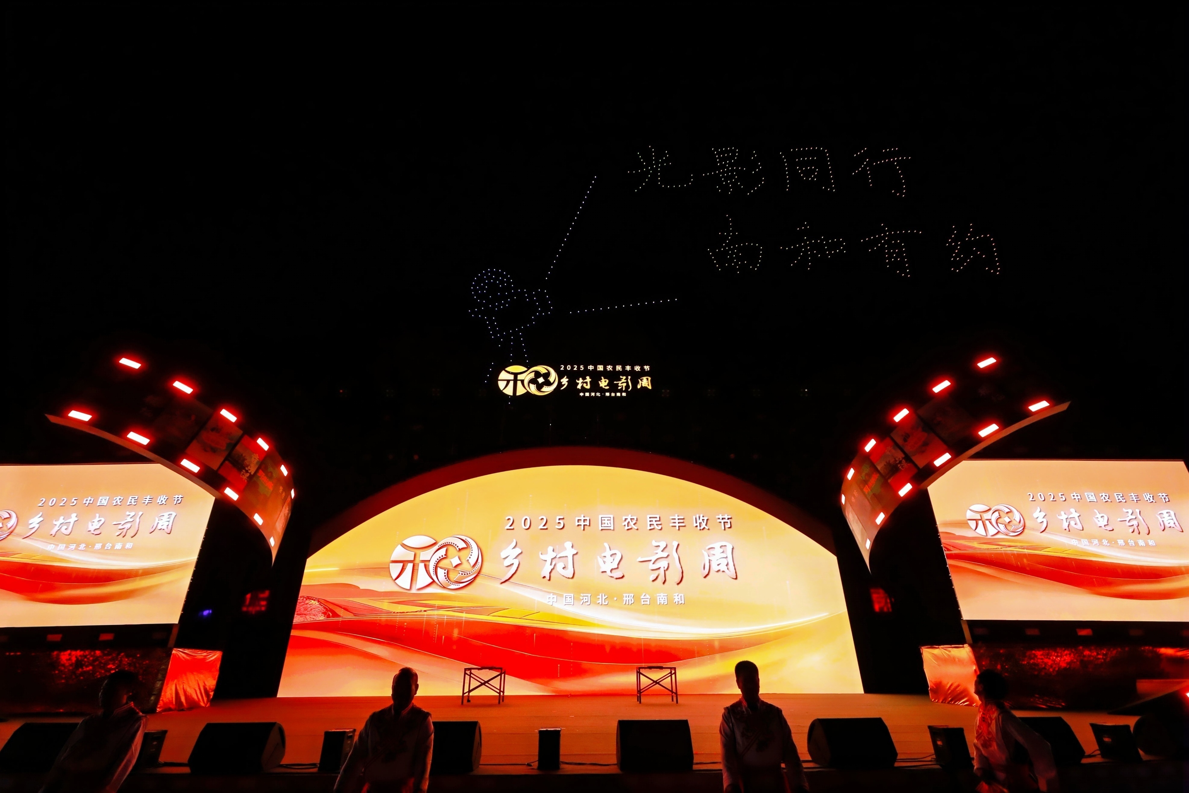 在光影丰收大道走秀、《这里是南和》宣传片、欢歌载舞的《和阳和》次第展演中,农业农村部总畜牧师王乐君宣布:“2025中国农民丰收节·乡村电影周开幕!”