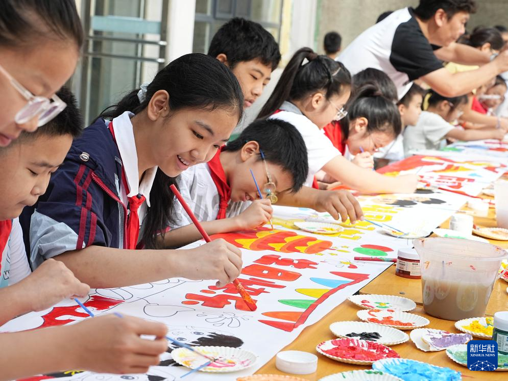 9月30日,河北省石家庄市宁安路小学师生在校园开展“童心彩绘迎国庆”活动。