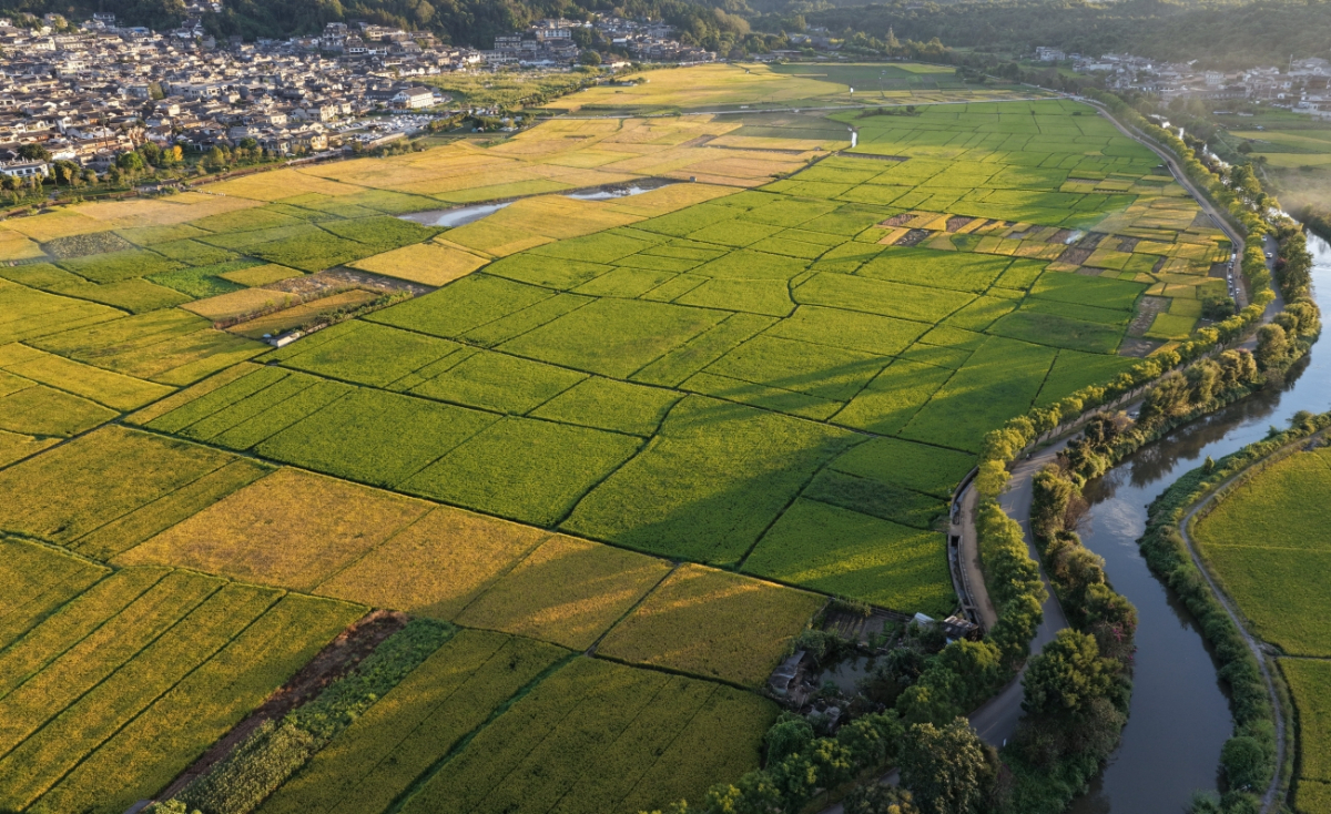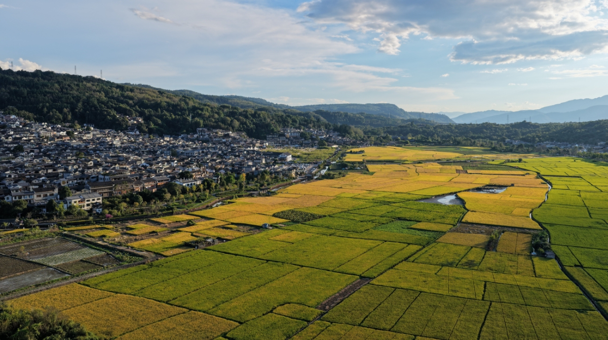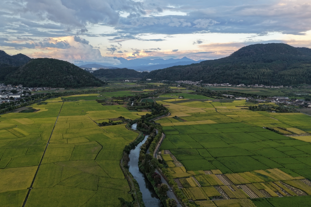 秋高气爽,走进云南省腾冲市和顺古镇,稻谷飘香,丰收在望,村庄和田园在蓝天白云映衬下景美如画。傍晚时分,夕阳的余晖洒向田间,更显美丽。(龚祖金)