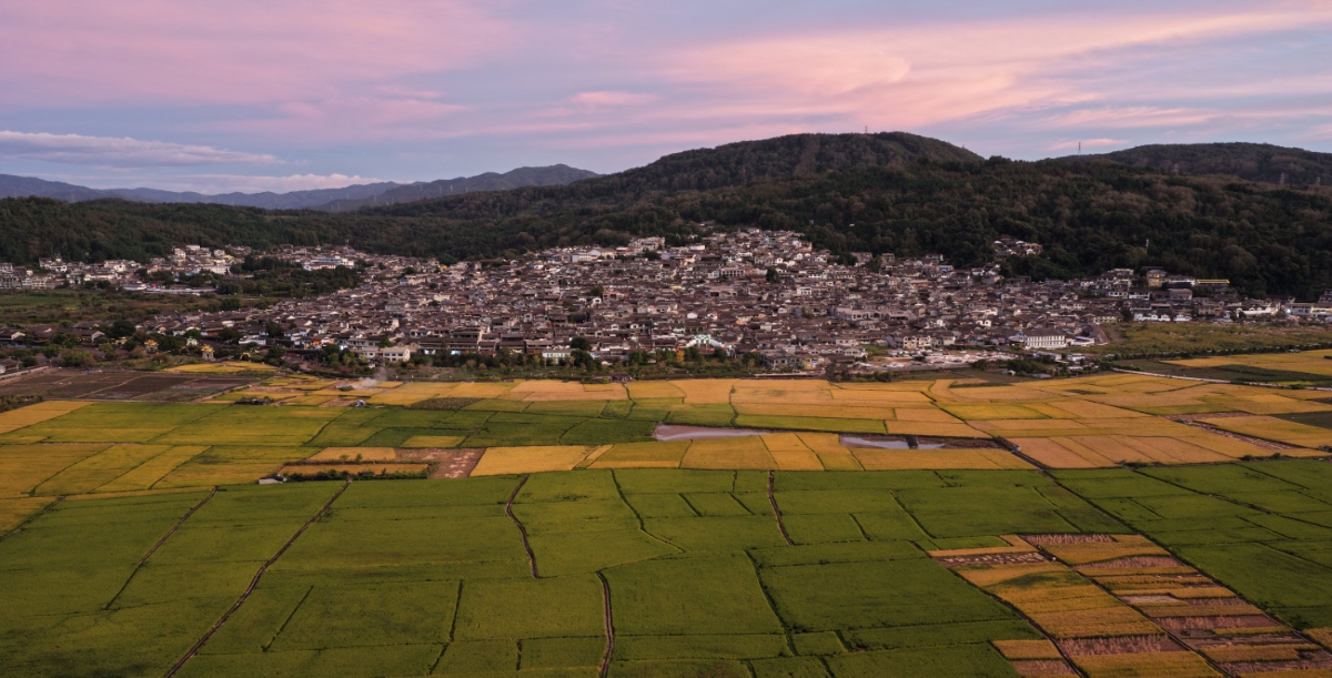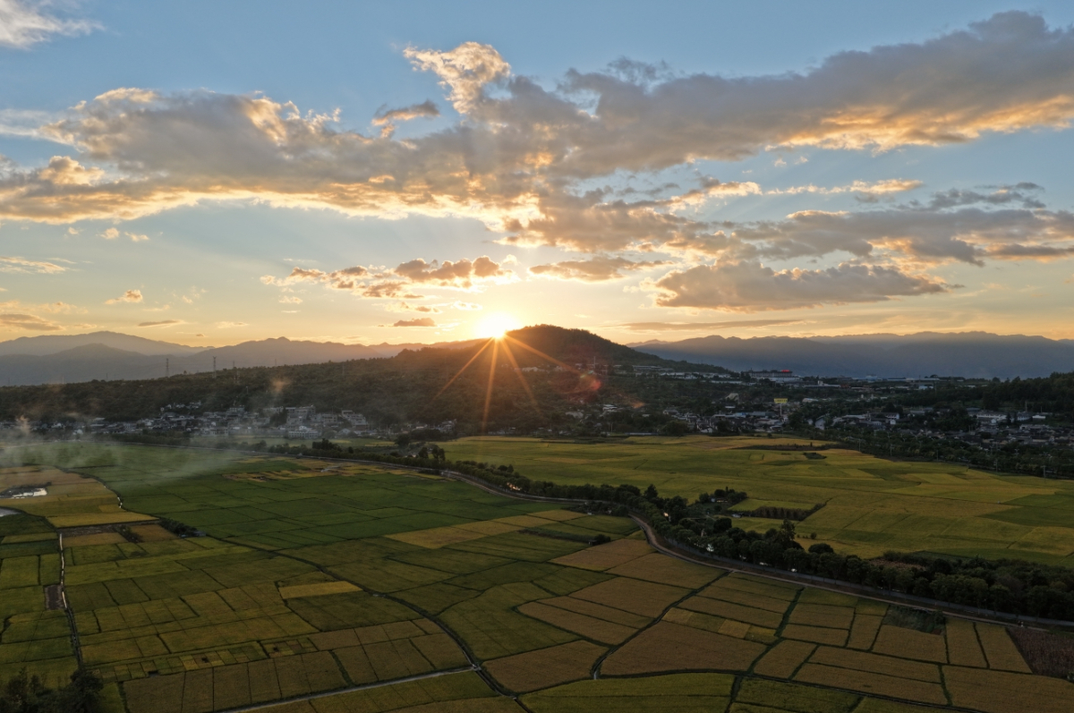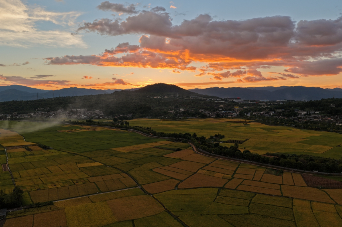 这是9月29日拍摄的夕阳下的云南腾冲和顺古镇田园。新华网发(龚祖金 摄)