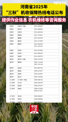 河南省2025年“三秋”机收保障热线电话公布 提供…