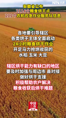 安徽省公布2114个粮食烘干点211个农机应急作业…