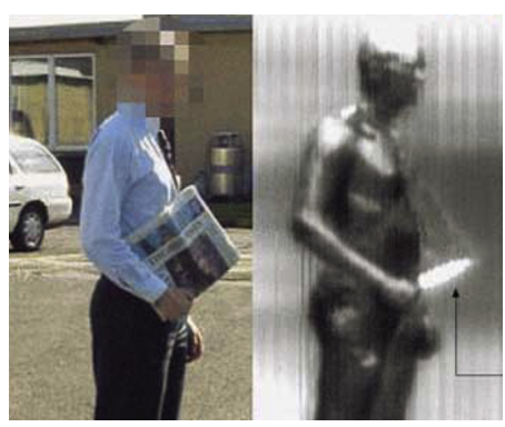 太赫兹视角下的持刀人,正常视角无法发现报纸中的刀具。