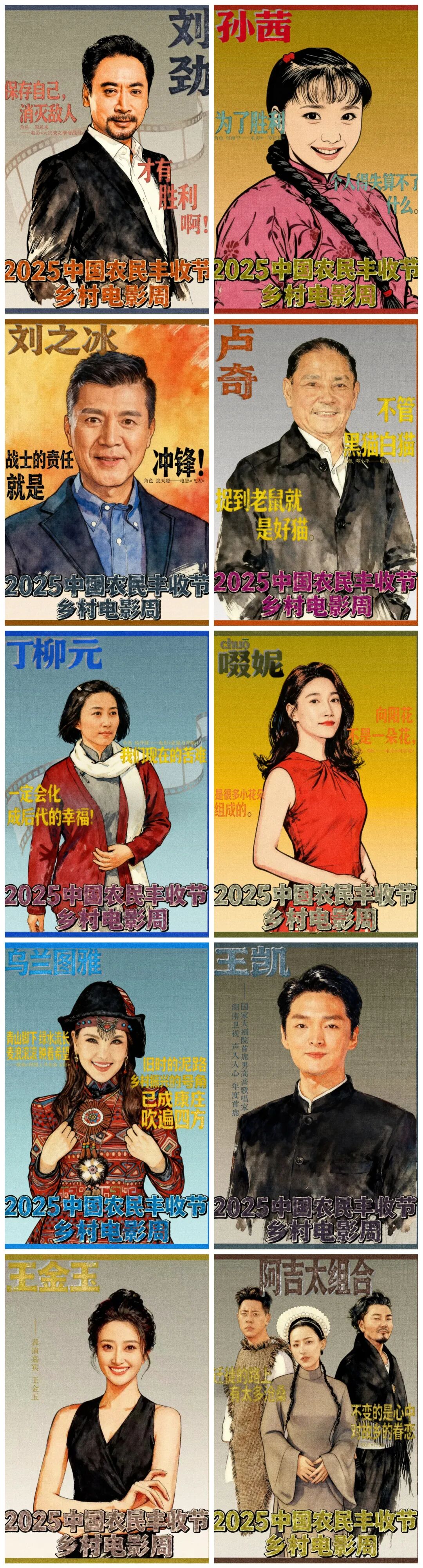 光影同行,丰收同庆。2025中国农民丰收节·乡村电影周由著名演员、从河北走出的优秀电影人王宝强倾情担任形象大使。联手刘劲、孙茜、刘之冰、卢奇、丁柳元、啜妮、乌兰图雅、王凯、王金玉、阿吉太组合等演员嘉宾,通过“经典展映-非遗活化-文旅融合”多维模式,为唐县人民奉上一场丰收季群众文化盛事。