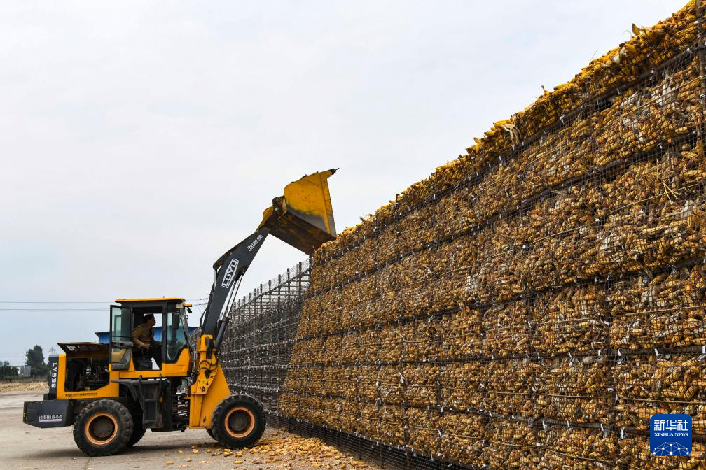 10月19日,河南省济源市五龙口镇农民将刚收获的玉米上架晾晒。