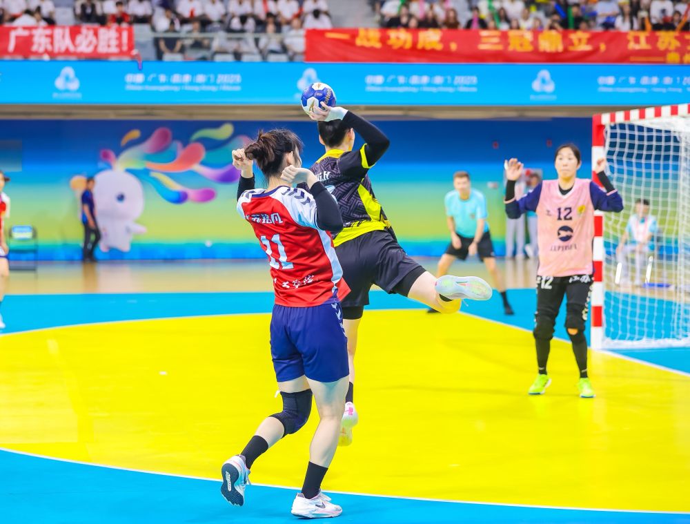 第十五届全国运动会手球女子组比赛19日在广东汕头体育中心体育馆结束决赛争夺,江苏队以32:23力压广东队,成就全运会三连冠;上海队通过加时赛1分险胜安徽队摘得铜牌。