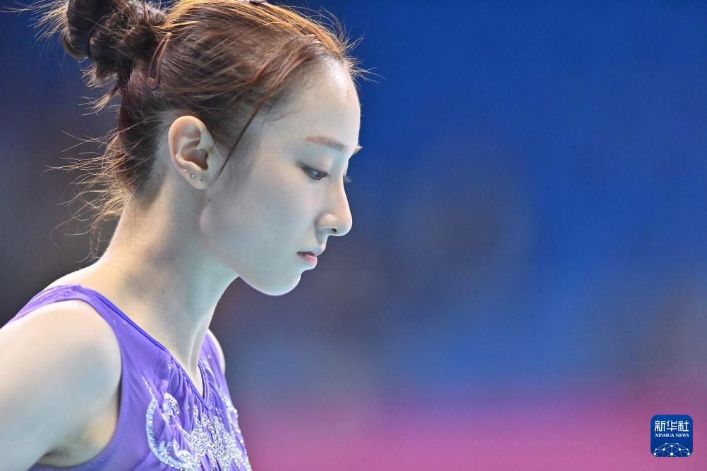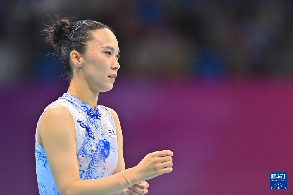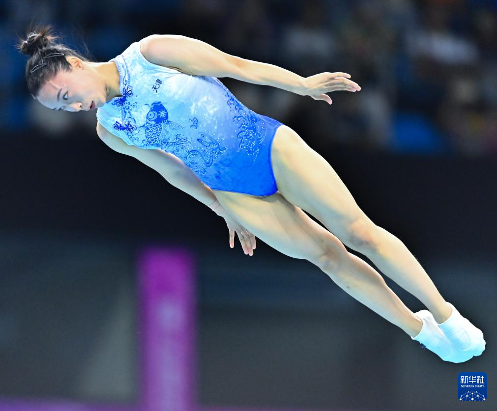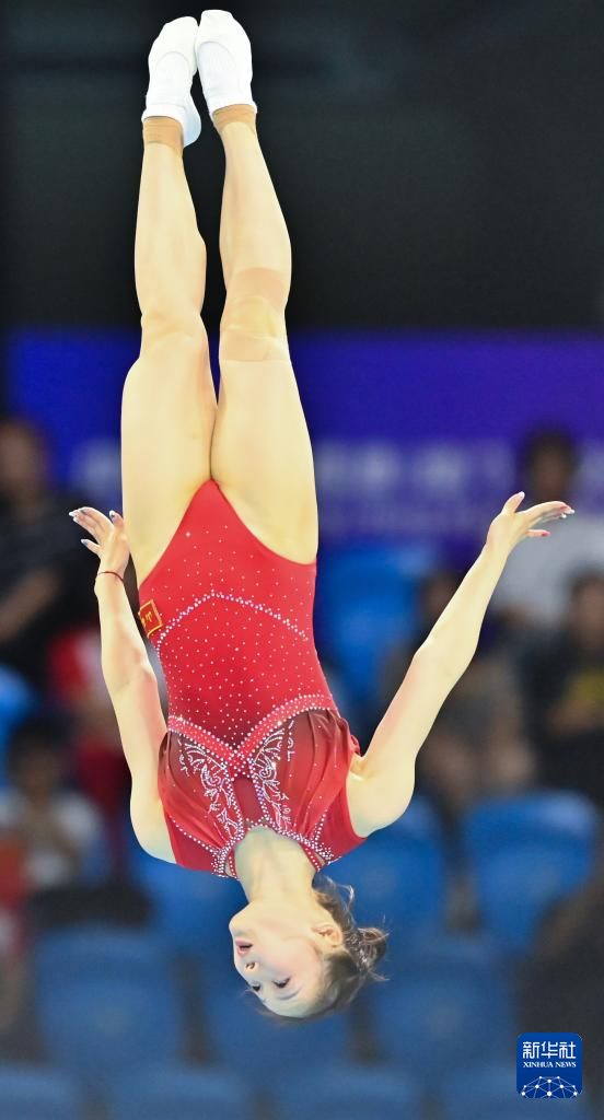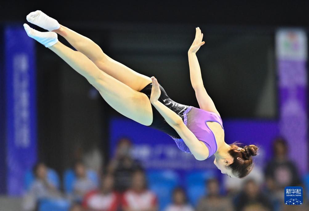 当日,第十五届全运会蹦床女子个人决赛在广州体育馆举行。