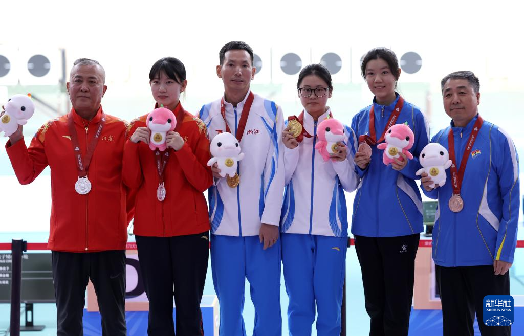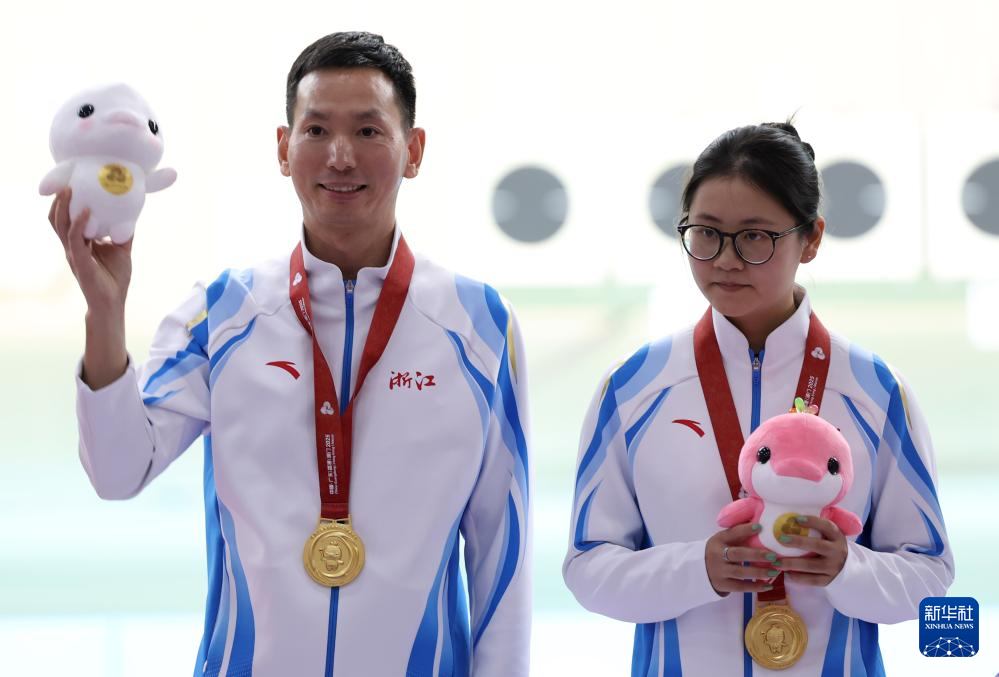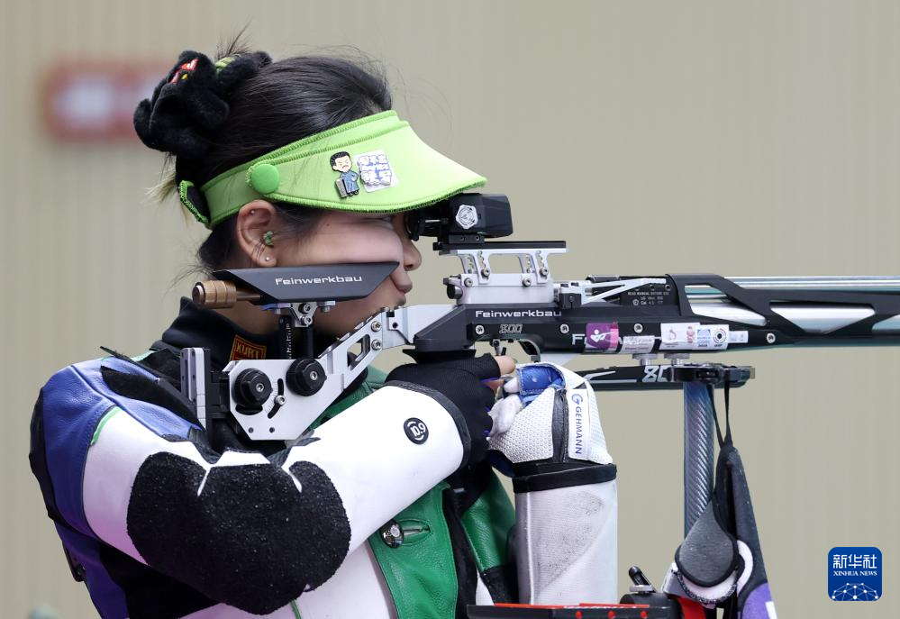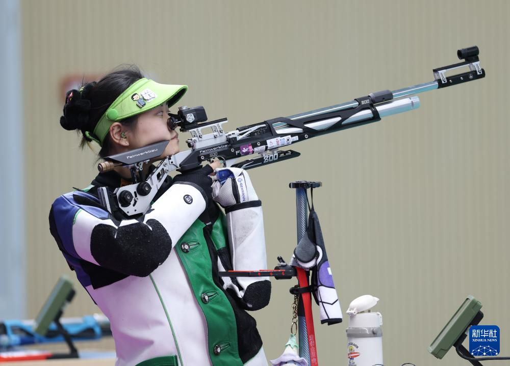 当日,第十五届全运会射击女子10米气步枪决赛在广州举行。